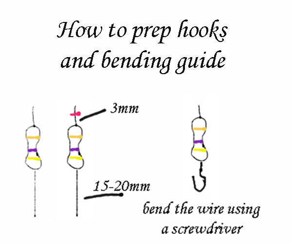 Puede hacer los anzuelos del señuelo por combinar simle alambre doblado y plumas o simplemente un alambre en forma de un gancho... Para efectos de colorante más puede usar (si tienes) cierta resistencia con combinaciones de color agradable y un Diodo zener.