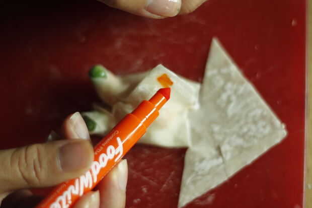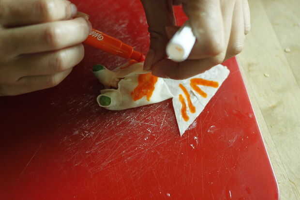 Segura agregar color utilizando un marcador seguro de alimentos.  No use un marcador regular en su comida.  Yo estaba absolutamente encantado de encontrar que este color no parece demasiado mal cuando de vapor las toneladas de ganado.