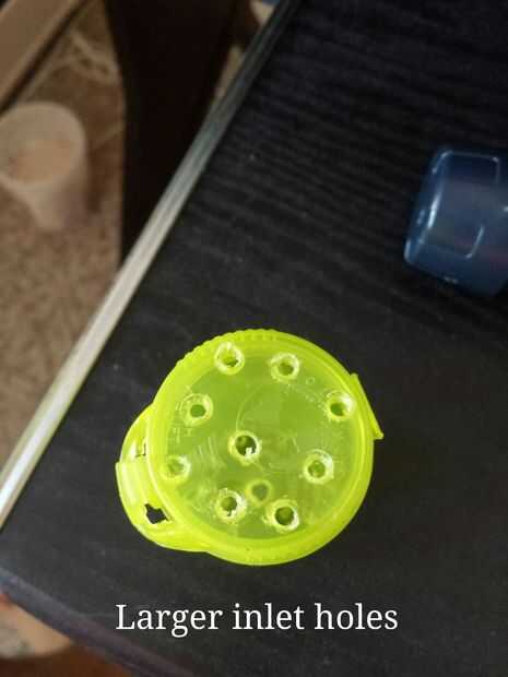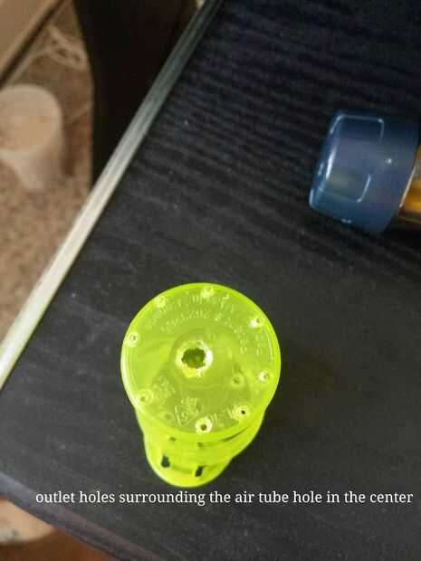 Decidir de qué lado de la botella es superior y que es inferior. Usé un tornillo y el destornillador para madriguera en el plástico. Un taladro trabajaría demasiado... Taladre los agujeros para la entrada y salida. Orificios de entrada van en la parte inferior de la botella; orificios de salida del ir en la parte superior de la botella. Mis orificios de entrada fueron ligeramente más grandes que mis orificios de salida. agujeros más grandes de entrada permite más agua en y evita obstrucciones. Orificios de salida del menor hacen que las burbujas de aire más pequeños. experimentar y ver lo que funciona para usted. El orificio de la manguera de aire es apenas lo suficientemente grande el la manguera de aire. el difusor en método, sólo tiene un gran agujero en la parte superior de la botella. Para difusor método, es necesario un agujero en la tapa y el fondo de la botella para roscar el tubo de aire completamente a través de la botella.