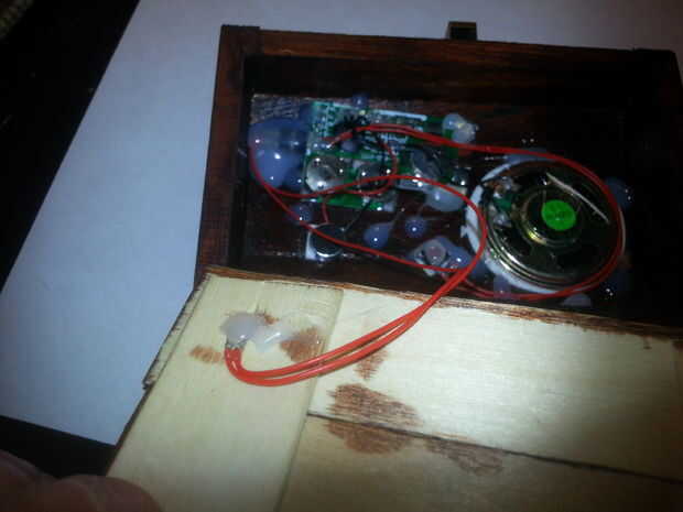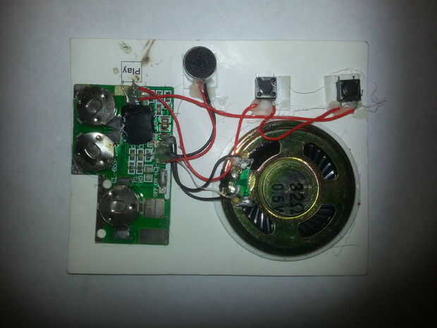El tipo específico que utiliza es capaz de regrabación y tiene 10 segundos de sonido. Exactamente bastante para el sonido de pecho de Ocarina of Time. Básicamente usted mantenga pulsado el botón de grabación, graba el sonido, luego pone el módulo en su lugar.