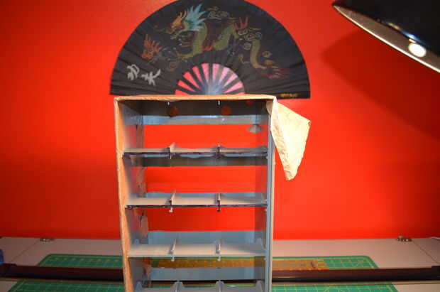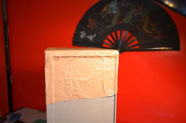 Para hacer esto, toma un montón de papel de kraft marrón o bolsas de papel viejo y empezar guata arriba. Desplegarlo y taco para arriba otra vez. Cuando piensas es alagodón lo suficiente, Taco un poco más. Entonces el pegamento blanco y empezar a pegar el papel para el exterior de la caja. Un pincel de espuma funciona muy bien para esto. Estaba realmente preocupada por lo que la parte trasera o el interior de la mina parecía, tan sólo volvió un poco del papel hacia adentro para cubrir el borde. Si eres muy cuidadoso sin embargo, usted puede cortar las piezas para el interior - sólo asegúrese de que ya que estás agregando a granel a la caja que aún los pequeños cajones encajan y deslice fácilmente.