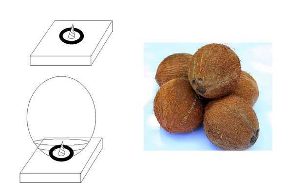 Si usted tiene un tiempo duro tratando de enganchar el coco y base de madera con el tornillo, utilice en su lugar sólo pegamento del gorila. Sólo asegúrese de encontrar una manera de sostener firmemente el coco sobre la base de madera mientras se seca el pegamento gorila. Me parece que grabar el coco abajo puede ayudar si usted decide seguir esta ruta en su lugar.