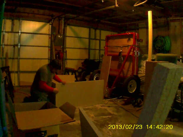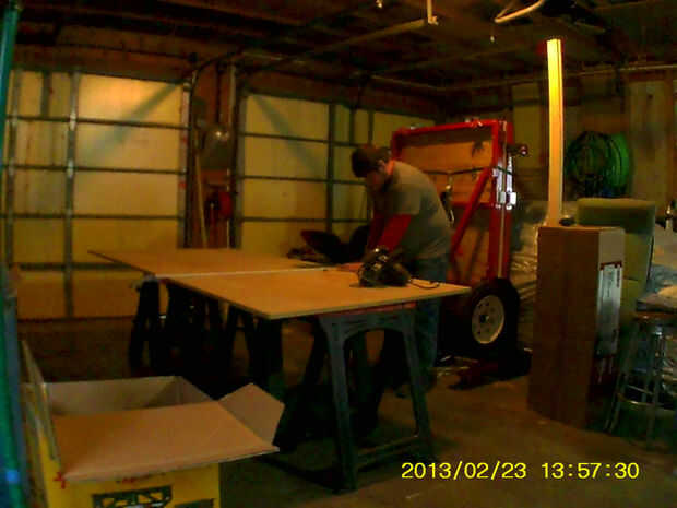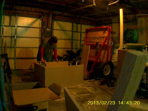 Para hacerlo simple en palabras que usé mi diseño corte lista y cortar todas las piezas y luego utiliza un 18 calibre estrecho grapadora corona con grapas larga de 1.5 pulgadas para montar rápidamente la caja completa. Entonces volví a través con un taladro y 1,25 pulgadas tornillos para darle más fuerza. Yo habría utilizado pegamento pero era demasiado frío en mi tienda para mi marca de pegamento para madera para realmente trabajar. No estoy demasiado preocupado aunque.