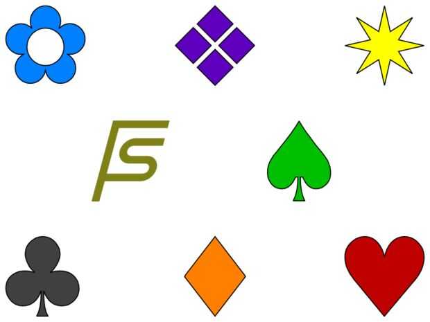 Inkscape tiene me los símbolos mejor con el correo nuevo. Yo de color los símbolos de la tarjeta según colores de juego alemán. Otros símbolos fueron inspirados por el traje de swizz, aunque ahora es un poco abstracto. Para colorear a había asignado los falta colores del círculo cromático.