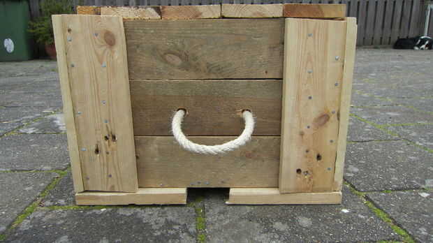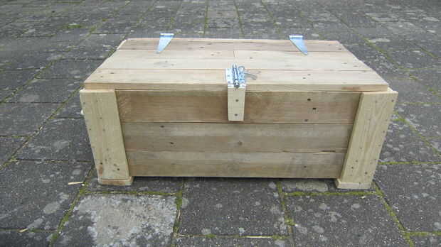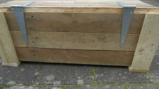 básicamente una caja con una tapa.:)Paso 1: marco he utilizado la paleta original base para dar la apariencia de pies en la parte inferior del troncoPaso 2: paredes Terminó tablas largo y finos, así que corrí 2 tablas más anchas a través para hacer l