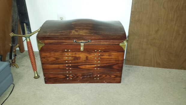 cofres del tesoro en el estilo pirata con la tapa redondeada mirar un poco difíciles de hacer. No - aquí está cómo hacer uno de madera vieja que tenga ahí, y sólo necesita una medición. Aquí está: 10 grados. Derecha, usted está listo para ir!Hice el