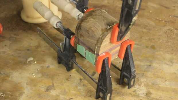 Una vez lijado completo, los laterales de la caja entonces se pegan sobre el arco de centro.