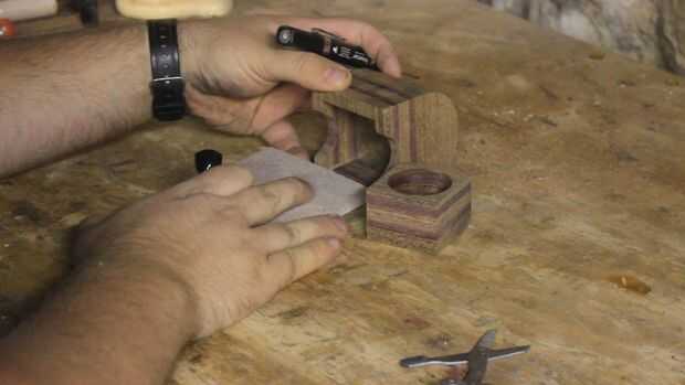 Usé algunos fieltro autoadhesivo respaldada por rellene el hueco y el interior de la caja con la cantidad perfecta de fricción. En este punto debe ser solo un poco flojo porque cuando se aplica el acabado agrega un poquito de espesor a la pieza.