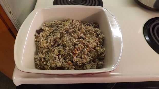 Mientras que la mama de Turquía fue asado, me preparado y al horno un arroz salvaje con hierbas y Quinoa relleno con una receta de cocina tratado (http://www.kitchentreaty.com).