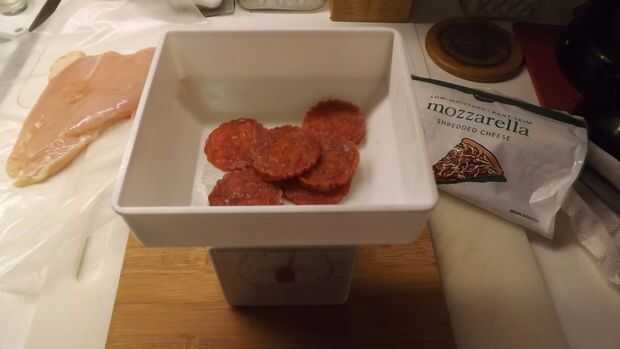 2. 1/2 onza en cuadritos Pepperoni, picado en trozos pequeños