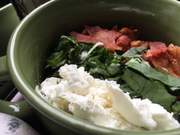 3 cucharadas desmenuzadas cocido panceta ahumada - 1 rebanada de tocino = 1 cucharada se desmoronó, bacon cocido
