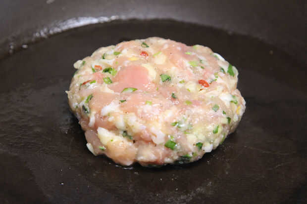 Ahora la diversión parte, llegar a tener su primera experiencia. Antes de rellenar las alas que te desea freír hasta una pequeña empanada de salchicha y ajustan el condimento. Normalmente cocino un pedazo más pequeño que el de la foto pero el fotógrafo/mujer quería un bocadillo! Tal vez algunos necesita sal o añadir algún extra ají o ajo. Ahora es el momento de la temporada a tu gusto.