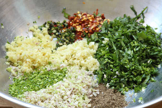 Mientras esperas la carne conseguir frío usted puede preparar las hierbas y condimentos para que estén listos para ir.