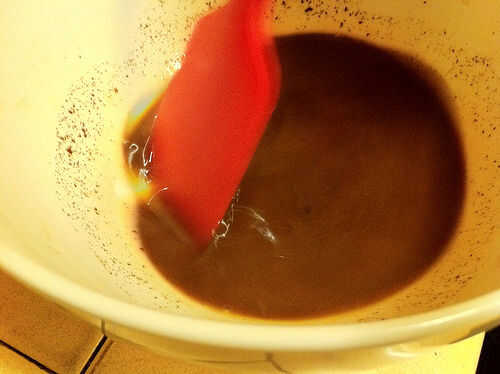Añadir al chocolate y mezclar hasta que en su mayoría uniforme (que tendrá la pieza grande ocasional flotando).