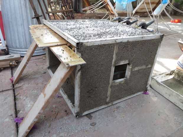 Con el fin de limitar el calor generado por la madera regó un arena/cemento de la mezcla (3/1) en lugar de arcilla como tuve un algunos cemento y arena pero no buen fango.