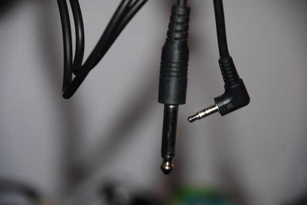 El cable que elegí fue mi violín, que ha un conector mucho más pequeño, del tamaño de auriculares en el otro extremo, que era mejor porque realmente no tienen ningún zócalos más grandes alrededor, ni lo harían cabe en el recipiente pequeño. Si usted tiene un cable roto quiere reutilizar, no dude en tener un zócalo en el pedal de la zanja y a conectar los cables directamente al interruptor.