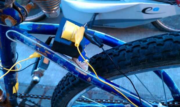 Si pones el reóstato su alambre y su transformador, puede afinar por lo que incluso en su velocidad de tippy-top, usted todavía no puede soplar su alambre. Apenas enganchar encima de la salida de reóstato su multímetro y una solución su multímetro para el manubrio firmemente (conducto de cinta funciona bien). Hacer sprints y mantener ajuste el reóstato hasta que usted no puede conseguir el poder por encima de 130VAC. (Nota: utilizar 130 VAC como guía. Puede ser demasiado alta todavía. Y mientras más brillante esté el alambre brille más corto durará. Utilizar su mejor juicio, se verá genial aunque es un poco más dévil)