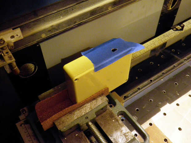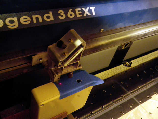 De todos modos, simplemente coloque un pedazo de pintura sobre el agujero y utilizar un lápiz o una cuchilla para empujar a través de la cinta y exponer el agujero. A continuación, coloque la caja en una prensa del taladro. Bajar la cama de su láser de corte de aproximadamente un pie y luego el shebang entero dentro. La forma más sencilla de hacerlo es apagar el x / cerradura del eje y, activar el puntero de punto rojo, desplace el cabezal de láser donde sentir el punto cero debe ser y luego restaura casa del láser. Luego, con un poco de ensayo y error y unos trozos de cinta, debe ser capaz de conseguir la alineación correcta.
