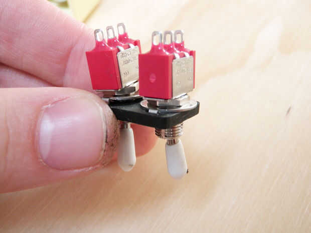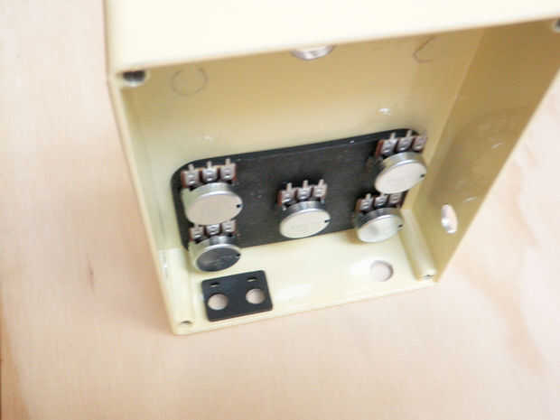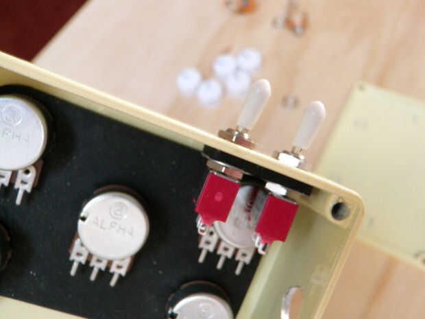 Instalar sus potenciómetros y conmutadores dentro de la caja usando los soportes de goma para sujetar en su lugar.