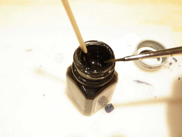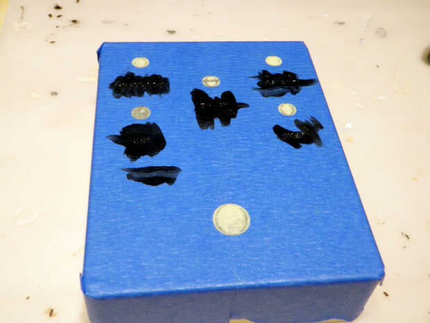 Remover el esmalte negro bien (ya que tiene una tendencia a separar) y luego aplicar una capa a cada una de las palabras grabadas en la parte superior de la caja. Espere a que seque y aplique una segunda capa. Luego, esperar a secar una vez más y seguir adelante.