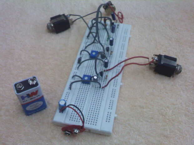 Azote hacia fuera sus protoboard y empezar a pegar los componentes en él. La manera que usted pone hacia fuera es totalmente hasta usted, pero trate de mantener las cosas tan limpio como sea posible y alinear todos los componentes ya sea horizontal o verticalmente. Puede ser un poco de dolor cuando se inicia, pero hace