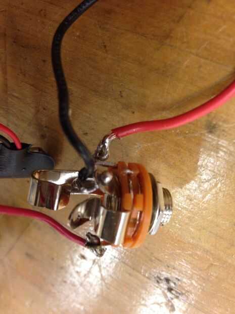 Inicio con el estéreo (3 puntas). Asegúrese de que es un estéreo y no un mono 12a (también tres frentes) jack. La patilla más cercana a la entrada del jack está conectada a la mayor parte en forma de J del gato. Esta parte se conecta al positivo de la batería. El diente del medio es el anillo. El anillo por lo general va al borne negativo de la batería, o en este caso en el circuito. Finalmente, el terminal más bajo es el suelo.