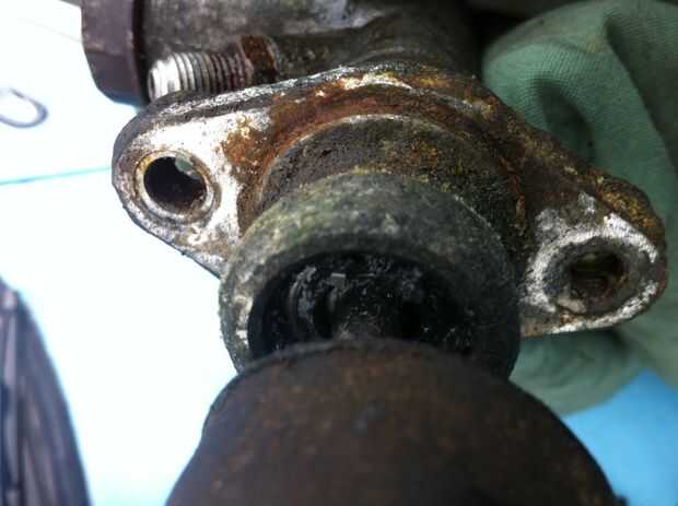 Ahora, vamos a desmontar aquello con fugas. Mira derecho hacia abajo el cañón de la misma, limpie la grasa y seleccionar el pequeño anillo de retención. Retirar con cuidado la varilla de accionamiento y cualquier cosa que viene con él.