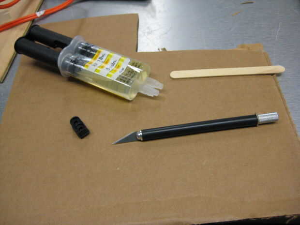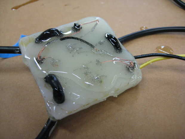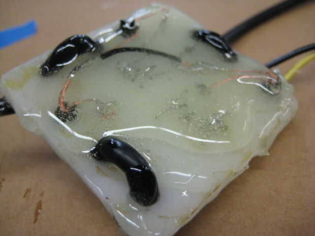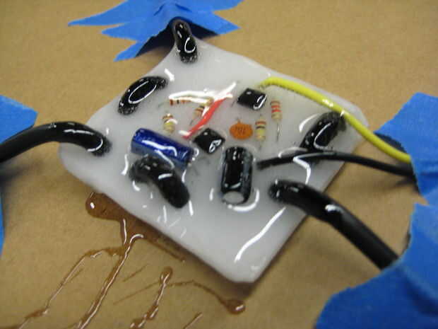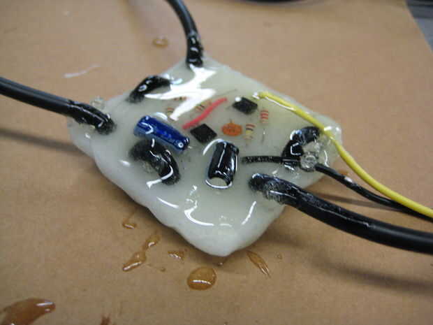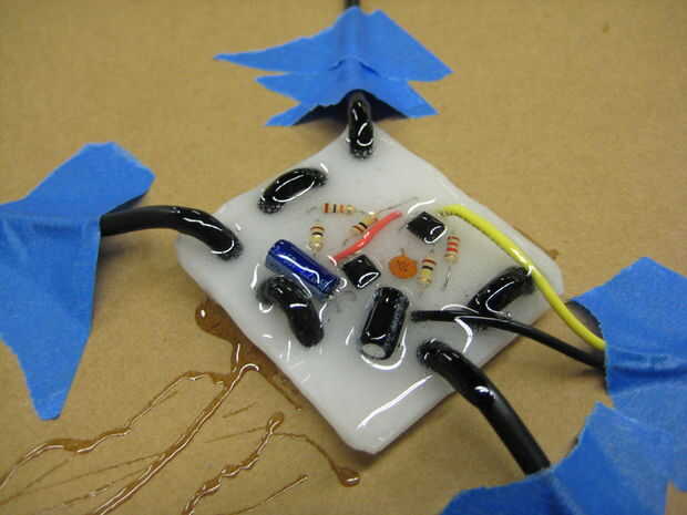 Ambos lados de tu circuito en una generosa capa de epoxy de la capa. Asegúrese de que los cables son desenredado y colocación en el tablero mientras que haces esto.