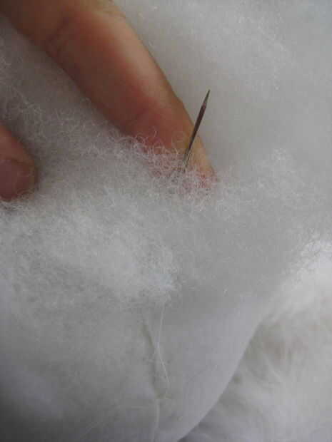 Tenga cuidado de no coser a través del interruptor de la tela. Fácilmente puede cubrir ese punto colocando pelusa sobre él y coser alrededor de él.