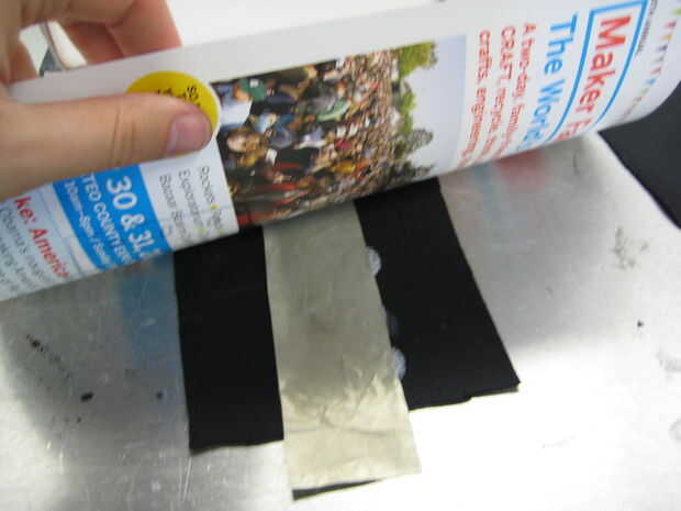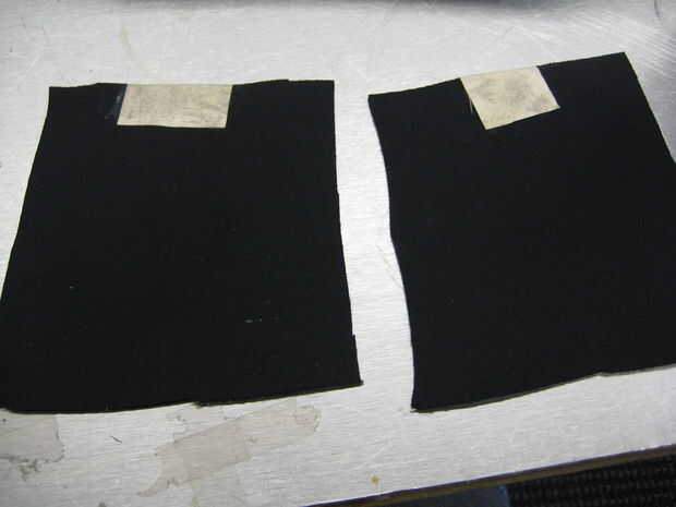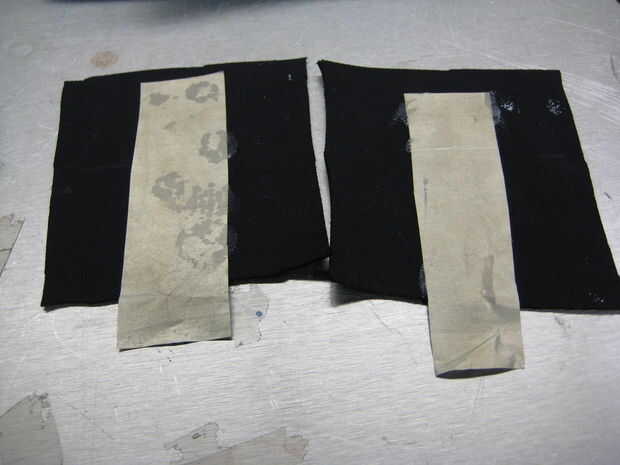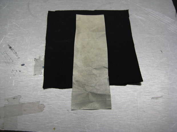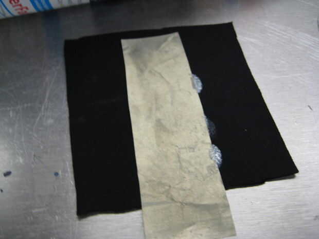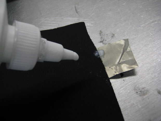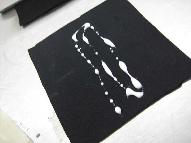 Pegamento conductor para el neopreno que la conductora tela cuelga una pulgada extra fuera del borde.