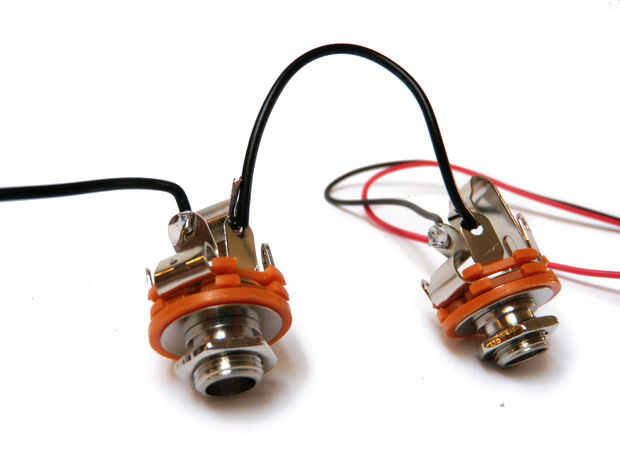 Por último, conecte un cable de 6" de rojo a las fichas mono en cada una de las tomas. Esta es la ficha grande que toca la punta del conector macho de mono.