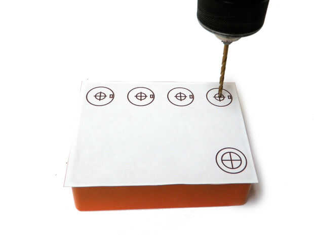 Ampliar el último agujero de la fila superior con una broca de 5/16" eneldo.