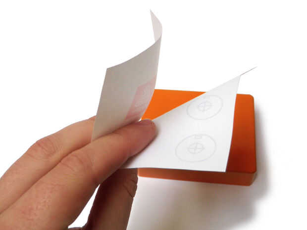 Retire la plantilla adhesiva de la parte delantera de la caja.