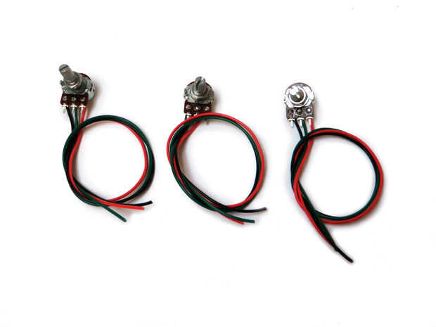 Conectar tres cables de 6" a cada uno de los potenciómetros.