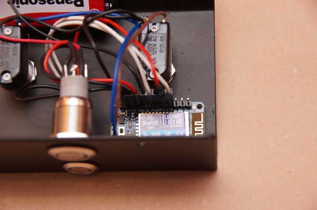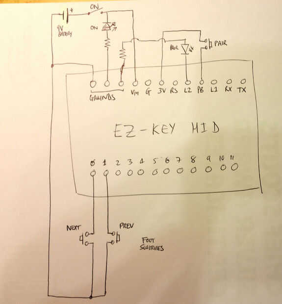 -los pedales están conectados a '0' y 1 en el EZ-key, así como a tierra (cables marrón, azules, negros);