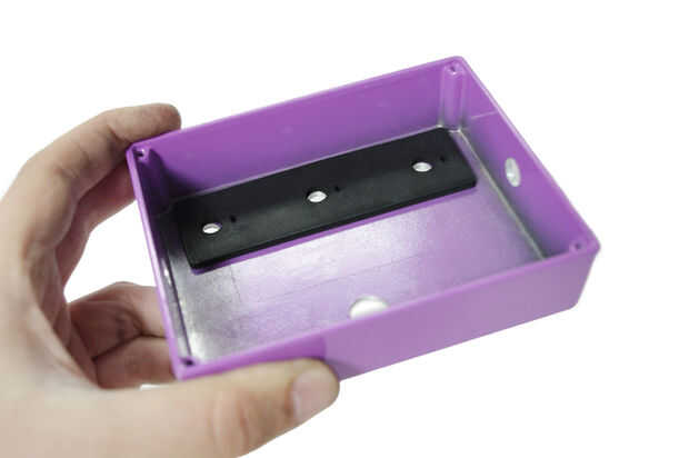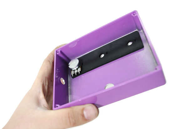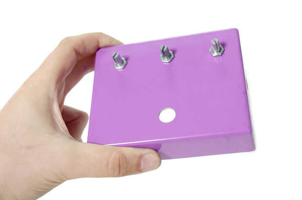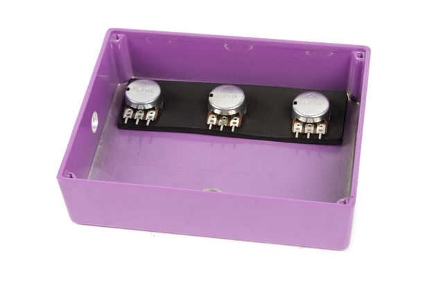 Monte todos los 3 potenciómetros en su lugar, con el potenciómetro de 10K en el centro y el potenciómetro de 100K logarítmico está a su izquierda (mientras el pedal está cara abajo). Fijarlos firmemente en su lugar con su hardware de montaje incluido.