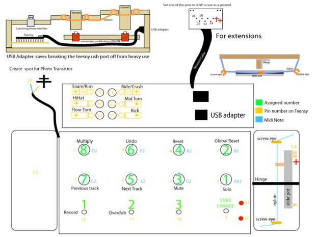 Lo he dibujado todo por lo que recuerdo qué pernos están conectados a qué botones e increíblemente no se pierdan en el proceso.