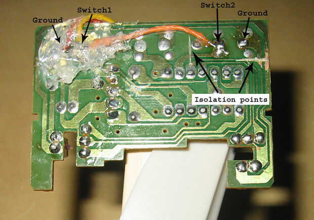 Sólo para estar seguro, una línea de corte (véase el cuadro) en los contactos para aislar a los interruptores de la IC, resisotrs, etc....