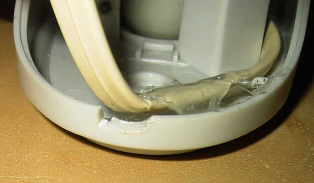 Todo lo que necesitas hacer aquí es crear un orificio para el cable en la parte trasera del ratón. He utilizado el soldador y limpiar el plástico derretido extra con el cúter. Luego fijar sus soldaduras y cables con la pistola de pegamento caliente. Cerrar el ratón y listo!