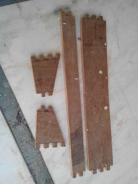 Para mi proyecto de pedal Midi, utilicé trozos de madera contrachapada disponible, alrededor de 10mm de espesor para la base y los lados del recinto. Cortar piezas para hacer un recinto de dimensiones 70 X 13 X (10,6) cm. Para alinear todo en su lugar, tenemos que cortar caja empalmes o uniones de dedo en los bordes de las piezas que encajan entre sí. El siguiente material explica qué caja de empalmes son y cómo hacerlos.