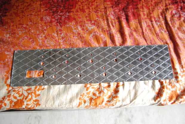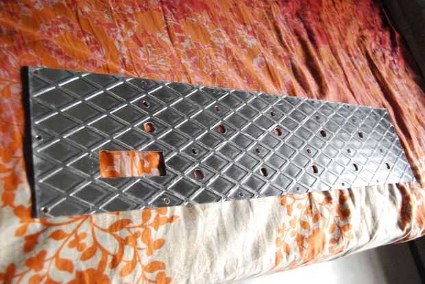 Para la pieza que va en la parte superior, podría sólo utilizo un máximo de madera de espesor 5mm, desde la ranura de lo LED se atornille, permitió solamente mucho. Decidí usar una placa de aluminio en su lugar. La placa que usé es de unos 3mm de espesor y tiene una especie de patrón del panal (que me pareció genial).