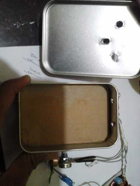 Taladré 3 agujeros en la cubierta de metal y taladré agujeros en el caso 2 en la parte superior y 1 en la parte inferior o viceversa (lo que quieras.) Como se puede ver ya colocada dentro de la cartulina para el aislamiento de la electrónica para el caso.