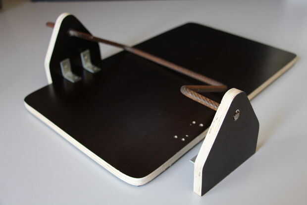 ein Preiswertes Brett Leimholz aus dem Baumarkt für unter 3 €, 4 Gummiefüße, 4 für Schrauben de pies, ein paar Päckchen Pedal montada, selbstklebende und KlettverschlüssePaso 1: der de verschrauben pies es empfiehlt sich die Löcher vorzubohren., das
