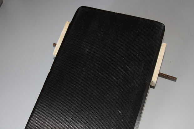 ein Preiswertes Brett Leimholz aus dem Baumarkt für unter 3 €, 4 Gummiefüße, 4 für Schrauben de pies, ein paar Päckchen Pedal montada, selbstklebende und KlettverschlüssePaso 1: der de verschrauben pies es empfiehlt sich die Löcher vorzubohren., das