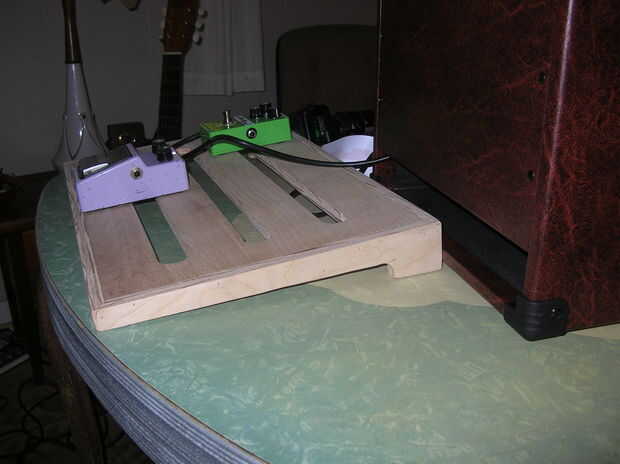 Construcción de una pedalera se ha hecho muchas veces. Quería construir algo que parecía más agradable que la mayoría de lo DIY que he visto, tomó menos de una hora para construir (sin contar acabado) y fue menos de $20. Creo que conocí a todos los objetivos.