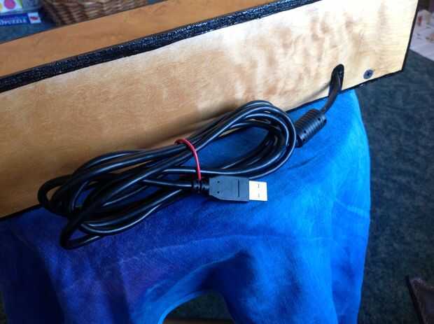 La parte trasera tiene una pequeña muesca para el cable USB escapar.
