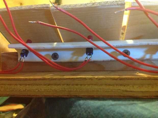 Para obtener los botones en el ángulo derecho para los pedales a la tierra directamente sobre ellos, montara todos los cinco botones a un pedazo de tubo de PVC se corta en dos, luego atornillar el conjunto en un bloque de madera. Esto, como muchos de mis métodos, era principalmente una maniobra de esquiva de matemáticas: me permitió a globo ocular el ángulo correcto en lugar de determinar mediante medición honesta.