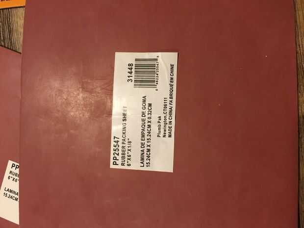 2 - empaquetadura de caucho hojas de 6 "x 6". En Lowe en la sección de fontanería. $1,50 cada uno.