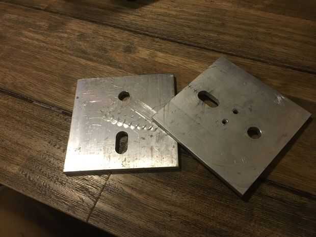 Chatarra de aluminio; suficientemente grande como para hacer una plataforma para sus zapatos. La mía es 4 "x 4" y 1/4" densamente. Encontré 2 piezas en un lugar de metal de desecho; total de $2,20.