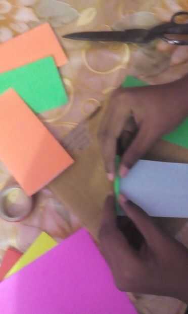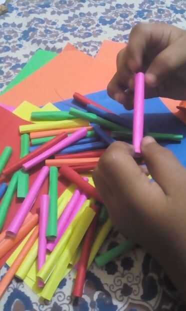 Tome una hoja de origami cortar por la mitad. Después de rodillo del corte el la hoja y aplicar el pegamento en el extremo. Siga estos pasos con las hojas de origami diferentes también.